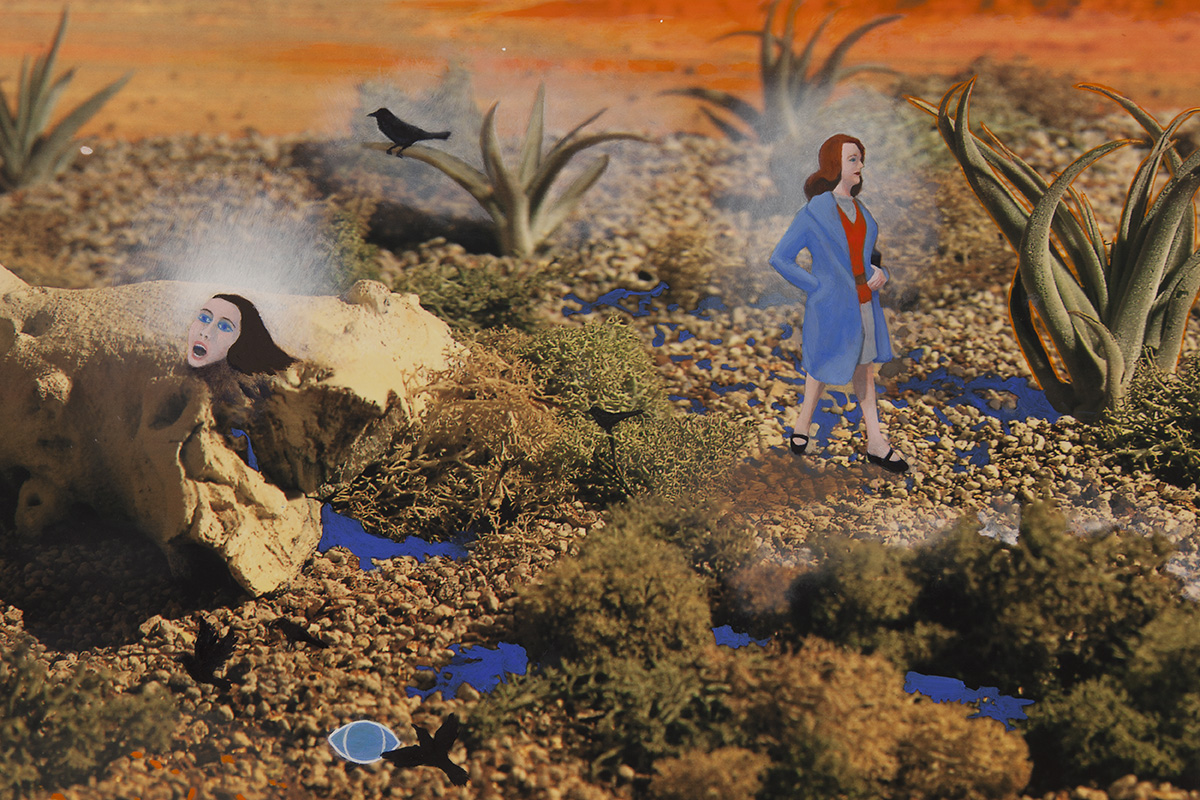 19″ x 27.5″ overall; oil paint on found mylar mounted on board.
